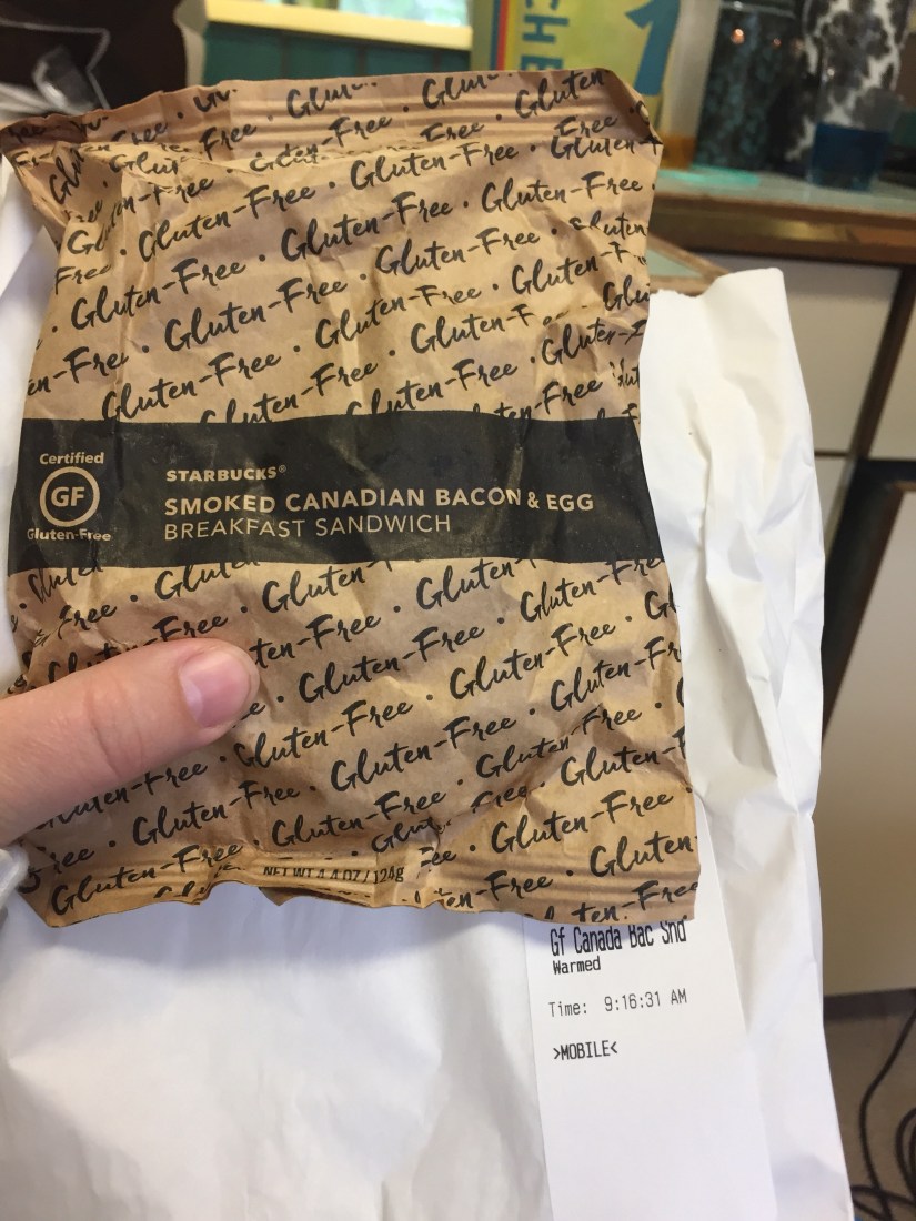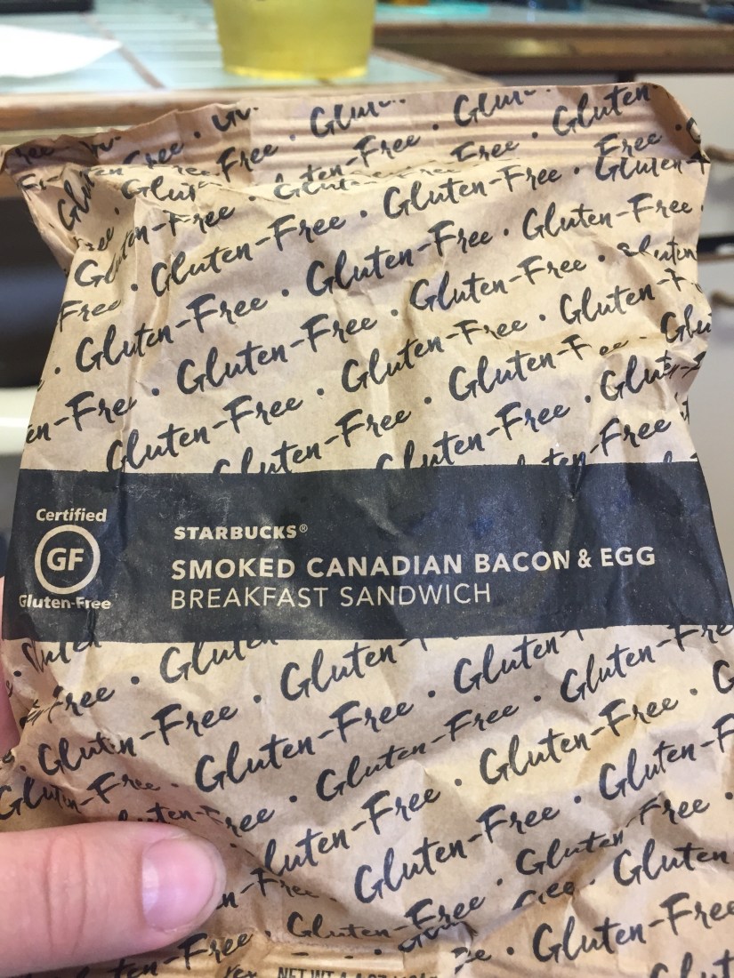 So most of you may know this already, but this was a new experience for me today! Starbucks has a gluten-free breakfast sandwich! Bonus- it was DELICIOUS !